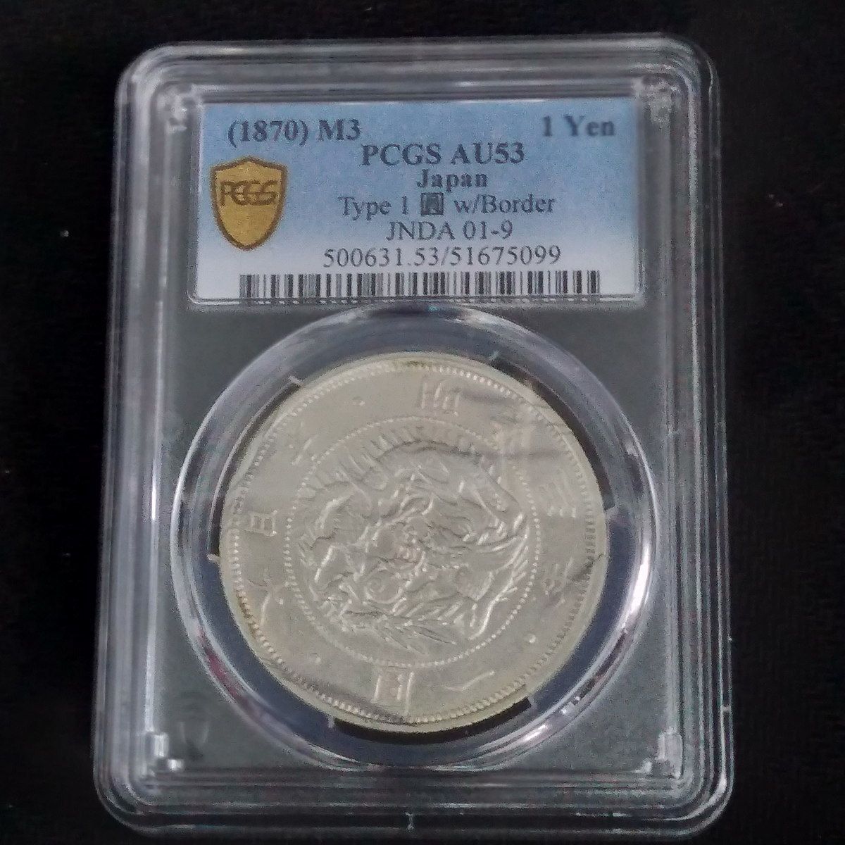 - 美術品・アンティーク・コレクション > コレクション > PCGS 旧1円銀貨 明治3年 スラブケース AU 古銭 金貨 円銀 明治三年 旧一圓銀貨 旧1円銀 普通円 PCGS AU53 旭日竜 スラブ