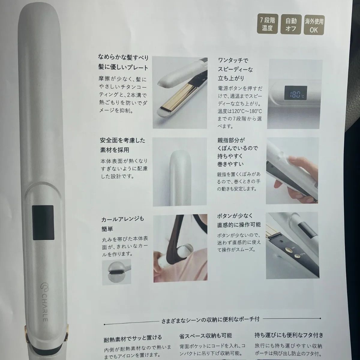 | 商品の特徴 | 数量限定発売! シャルレ 髪の毛をケアできる ヘアアイロン。数量限定発売! シャルレ 髪の毛をケアできる ヘアアイロン。数量限定発売! シャルレ 髪の毛をケアできる ヘアアイロン。数量限定発売! シャルレ 髪の毛をケアできる ヘアアイロン 数量。⭐️今 流行りの髪をケアするヘアアイロンがシャルレから限定発売になりました⭐️髪のケアとおしゃれがこれ一台でかないます【使い方】夜は【ヘアケアモード】で 1️⃣濡れた髪をタオルドライします 2️⃣アウトバストリートメントを髪全体に なじませます 3️⃣ヘアケアモードで髪をはさみ 毛先へと すべらせます 4️⃣ドライヤーで乾かして仕上げます朝は【スタイリングモード】で 1️⃣髪全体をくしやブラシで整えます 2️⃣ヘアアイロンで髪をはさみ毛先へと すべらせます 3️⃣仕上げにアウトバストリートメントを なじませるとさらにつやっとまとまります⭐️ 耐熱素材のポーチ付きで 熱いままアイロンを置くことが出来ます品番 RA392定価 27500円⭐️お値引きはご遠慮ください#シャルレ #シャルレヘアケア #シャルレヘアケアアイロン #シャルレヘアアイロン #ヘアケアアイロン #ヘアアイロン | ||