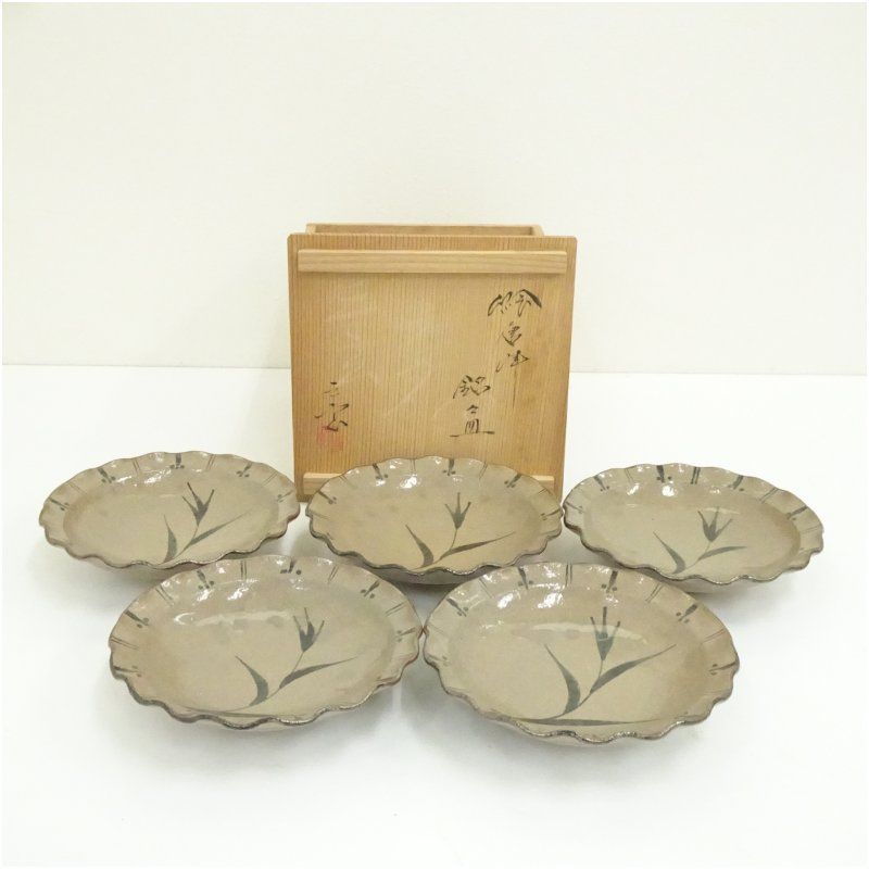 | 商品の特徴 | 絵唐津 三玄窯 中里重利 小鉢 (唐津焼) 唐津焼 三玄窯 中里重利 絵。三玄窯 中里重利造 絵唐津小鉢4客。三玄窯(中里重利)絵唐津珍味銘々皿5枚セット | 肥前陶磁。中里重利氏は、唐津焼の人間国宝であった12代中里太郎右衛門(無庵)の3男として生まれ、のちに独立し三玄窯を構えました。中里重利 作 絵唐津蛤向付 1 | LAPIN ART ONLINE。骨董市にて¥9600で購入いたしました。時代物 唐物青磁煎茶器 5客。※私は使用していないため「新品未使用」で出品しています。茶道具 時代物 平茶碗 合わせ箱 骨董品、美術品。シンプルな文様が美しいです。琺瑯彩蒔花鳥六方花瓶 景徳鎮 陶磁器 装飾品 工芸品 置物。#中里太郎右衛門#陶器#絵唐津#有田焼#伊万里焼#民藝#手しごと | ||